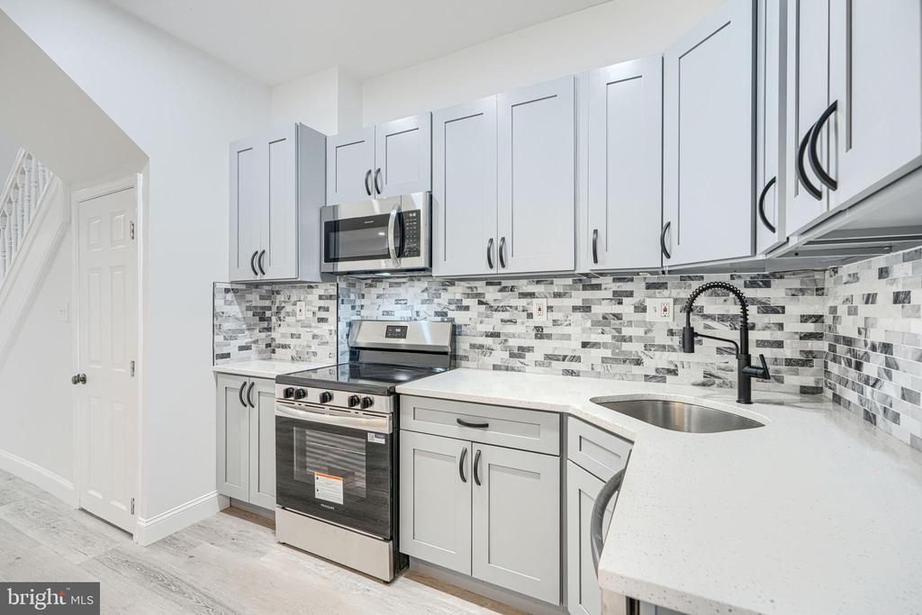 Wake up every morning, and say, I can’t believe I live in this amazing home! Open layout! Large Space! High Ceilings! Gorgeous kitchen with Quartz countertop and island, coordinating backsplash, wood shaker cabinets, and stainless steel appliances. Upstairs dual entry bath is elegant and comfortable and large, with Calacatta tile, custom tilework and designer plumbing and lighting fixtures. Fully finished basement features a family room and 4th bedroom which has a private full bathroom with custom tile shower. This home has a front porch, fenced in back yard, coordinated lighting and plumbing fixtures, new doors interior and exterior, recessed lighting, new HVAC system, Luxury vinyl plank flooring. You will love this home.